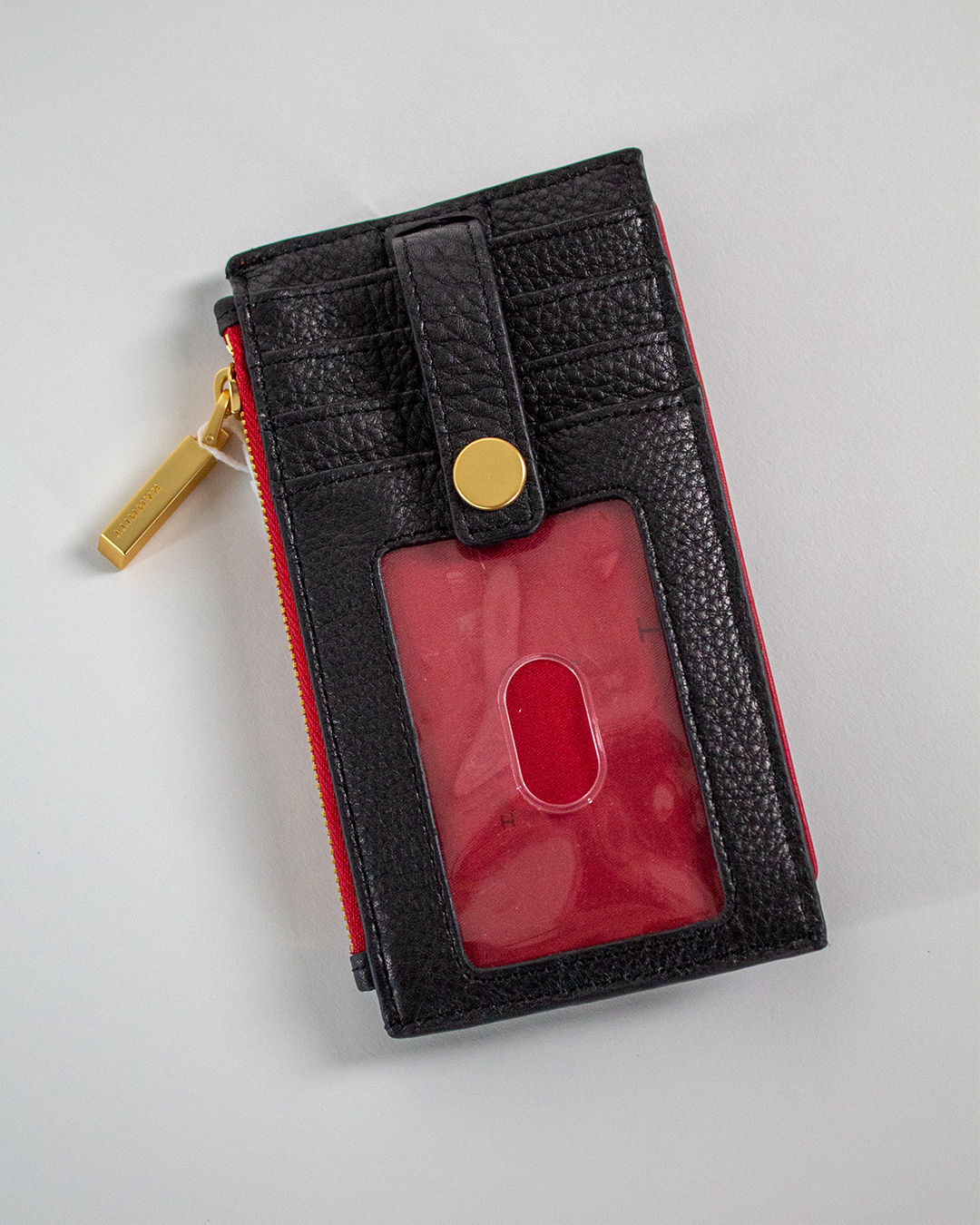 Your schedule is booked. That's why we've created one essential wallet that conquers every calendar entry. Stash credit and transit cards in up to 8 secure slots, and store meter change in one zippered pocket. Plus, enjoy a transparent ID slot when that cute bouncer asks for a peek at your license.