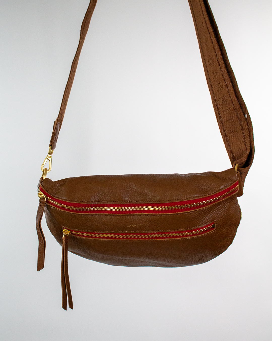 This larger take on one of our most popular bags has all the space you've been dreaming of, with a trendy shape and room for even more essentials. Plus, its long strap allows you to truly wear this style as a low-slung crossbody, in addition to over your chest. Crafted with classic black pebbled leather with our best selling brushed gold hardware and signature red zipper. Our favorite update to the belt bag / fanny pack look, this crossbody bag can be worn as a sling so you can go hands-free.