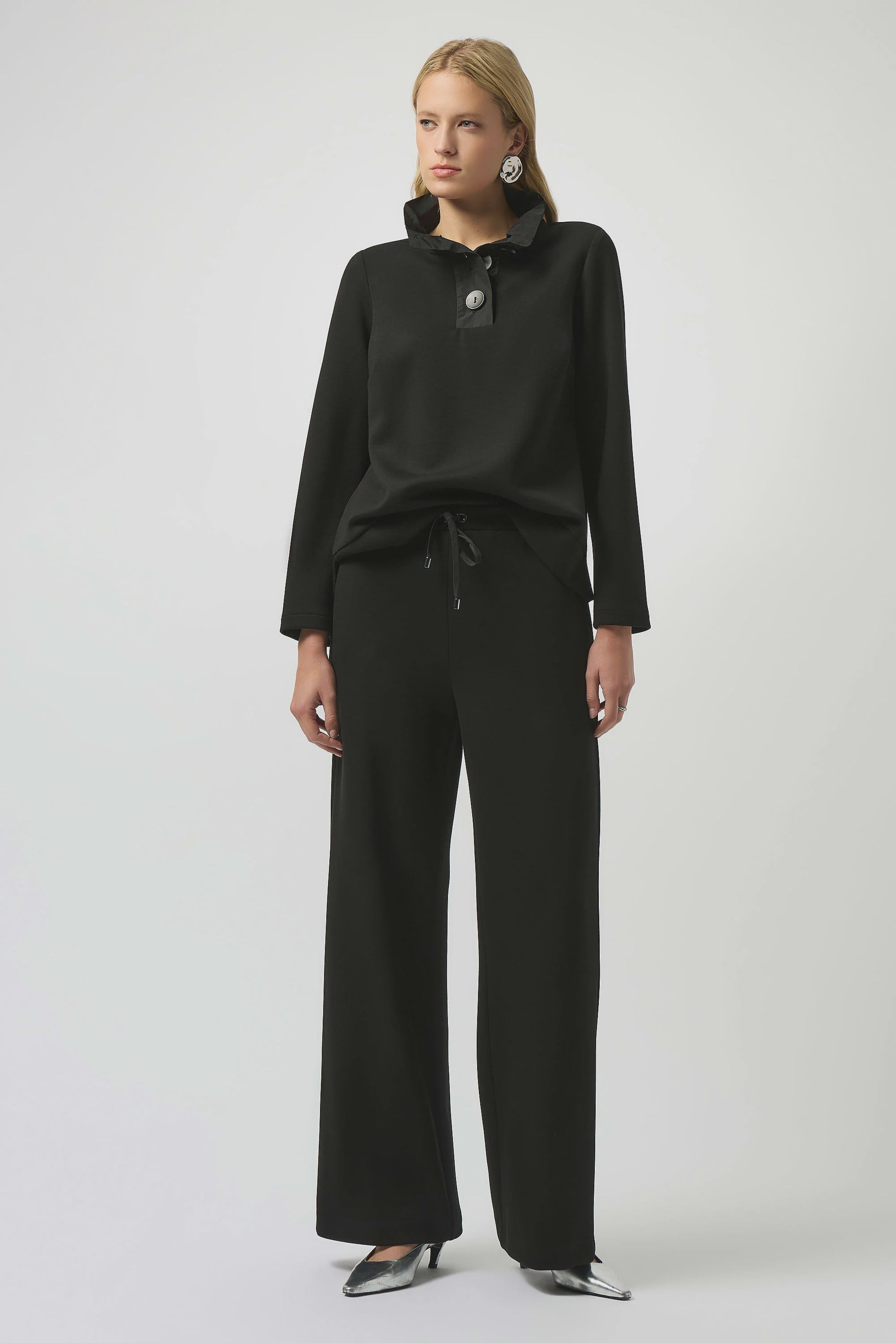 Embrace the unparalleled style of this scuba jersey top. The piece boasts a funnel collar with sleek placket detail and long straight sleeves, that create a perfectly chic look. The boxy silhouette, adorned with a front button closure, captures the essence of contemporary flair.