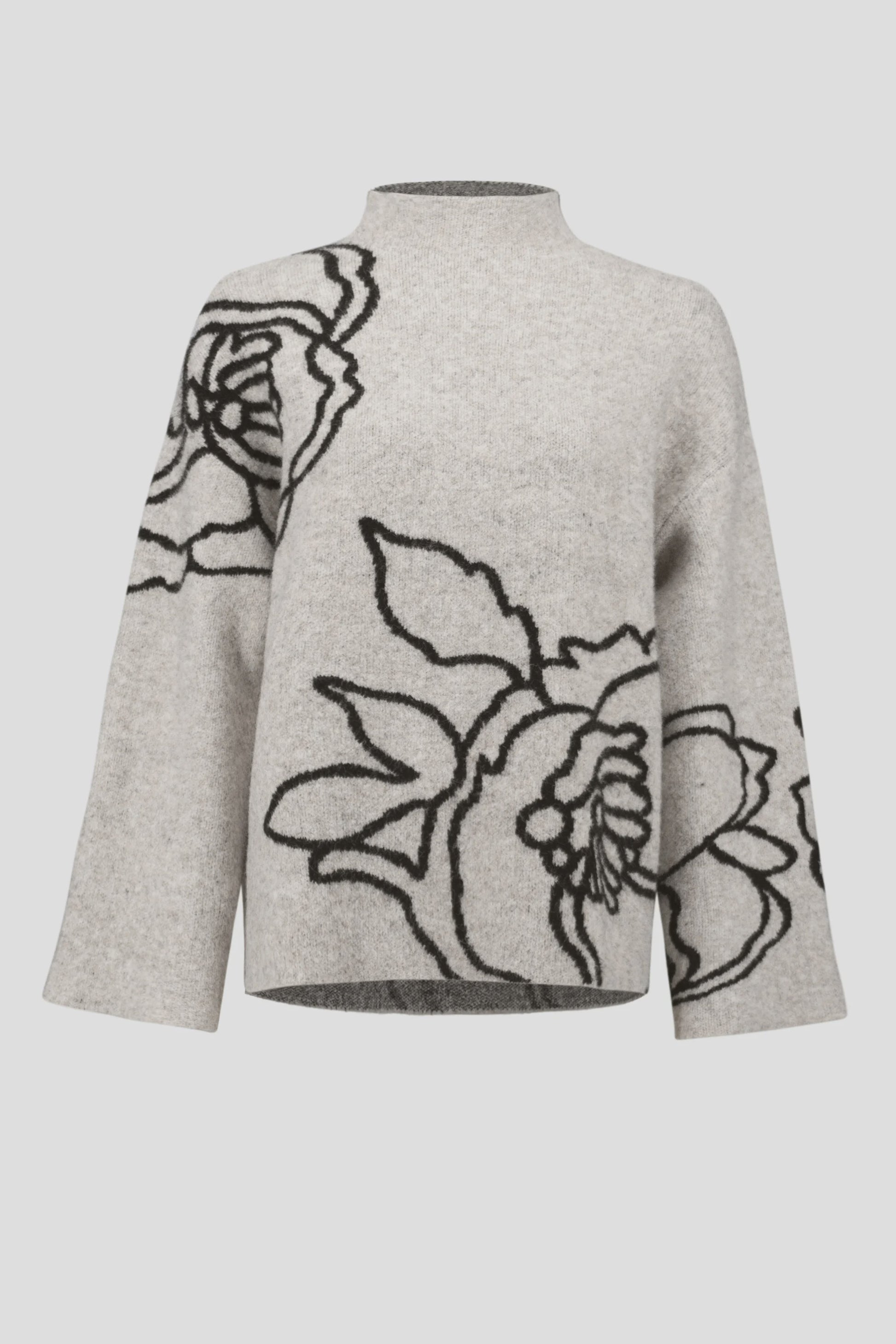 This sweater knit pullover features a stunning floral print that takes center stage. Designed with a chic mock collar, long sleeves, and a sleek straight silhouette, it’s a stylish and versatile addition to your wardrobe.