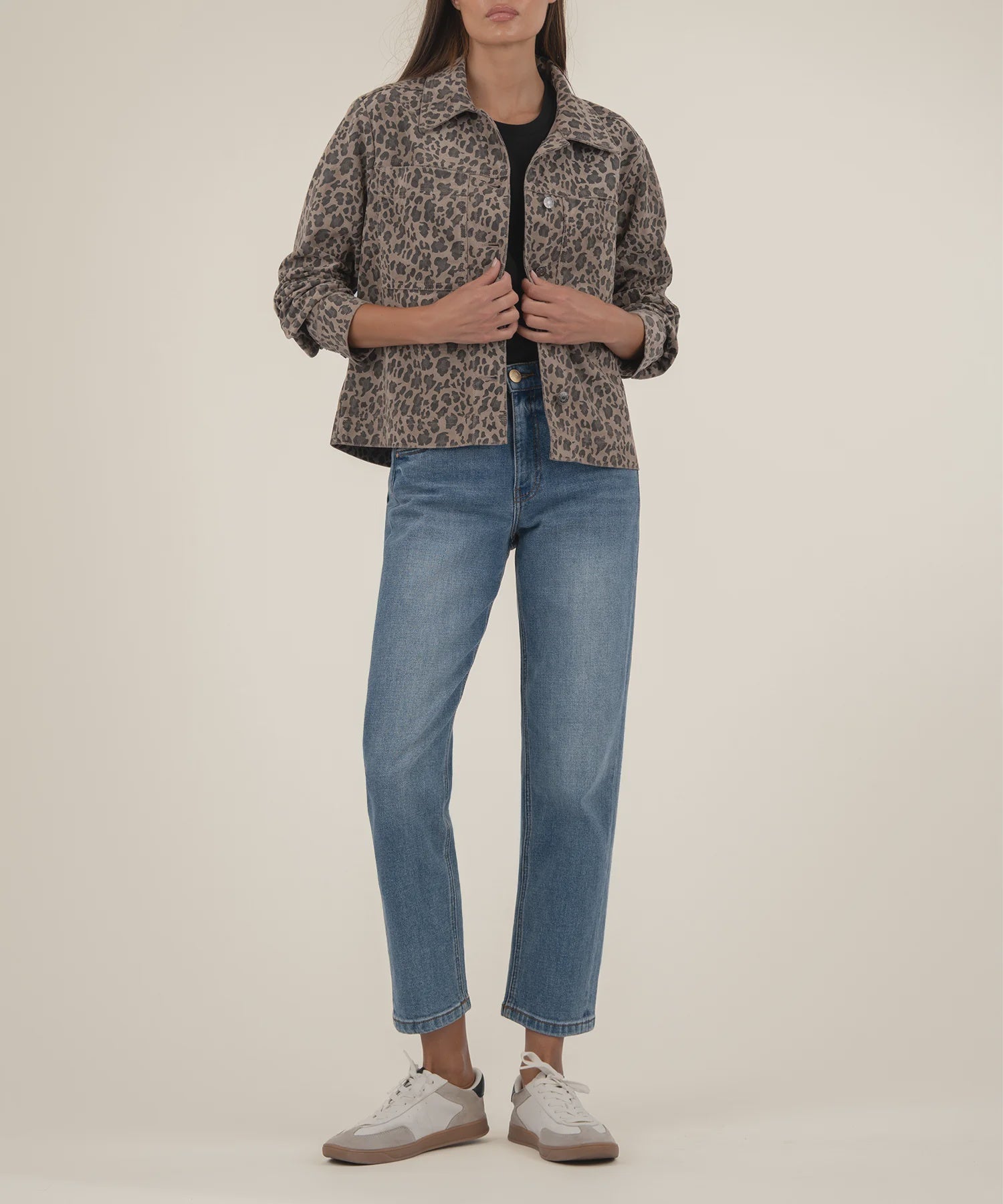 - Turn heads with this stylish animal print shirt jacket made from soft, suede-feel material. Featuring a classic button-front, it’s a versatile, fashion-forward piece perfect for layering and adding boldness to your look.