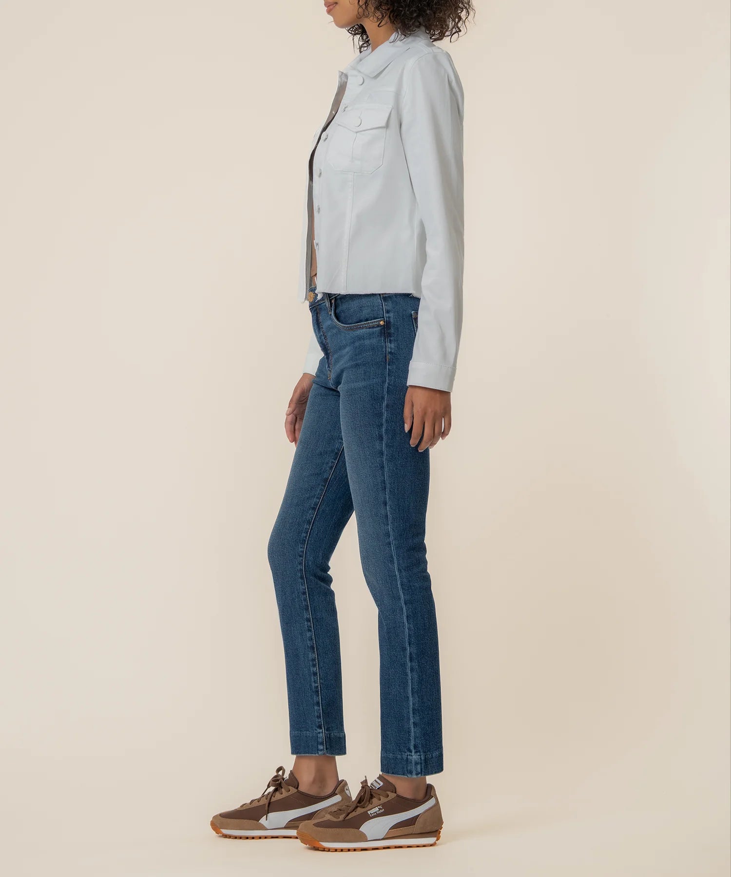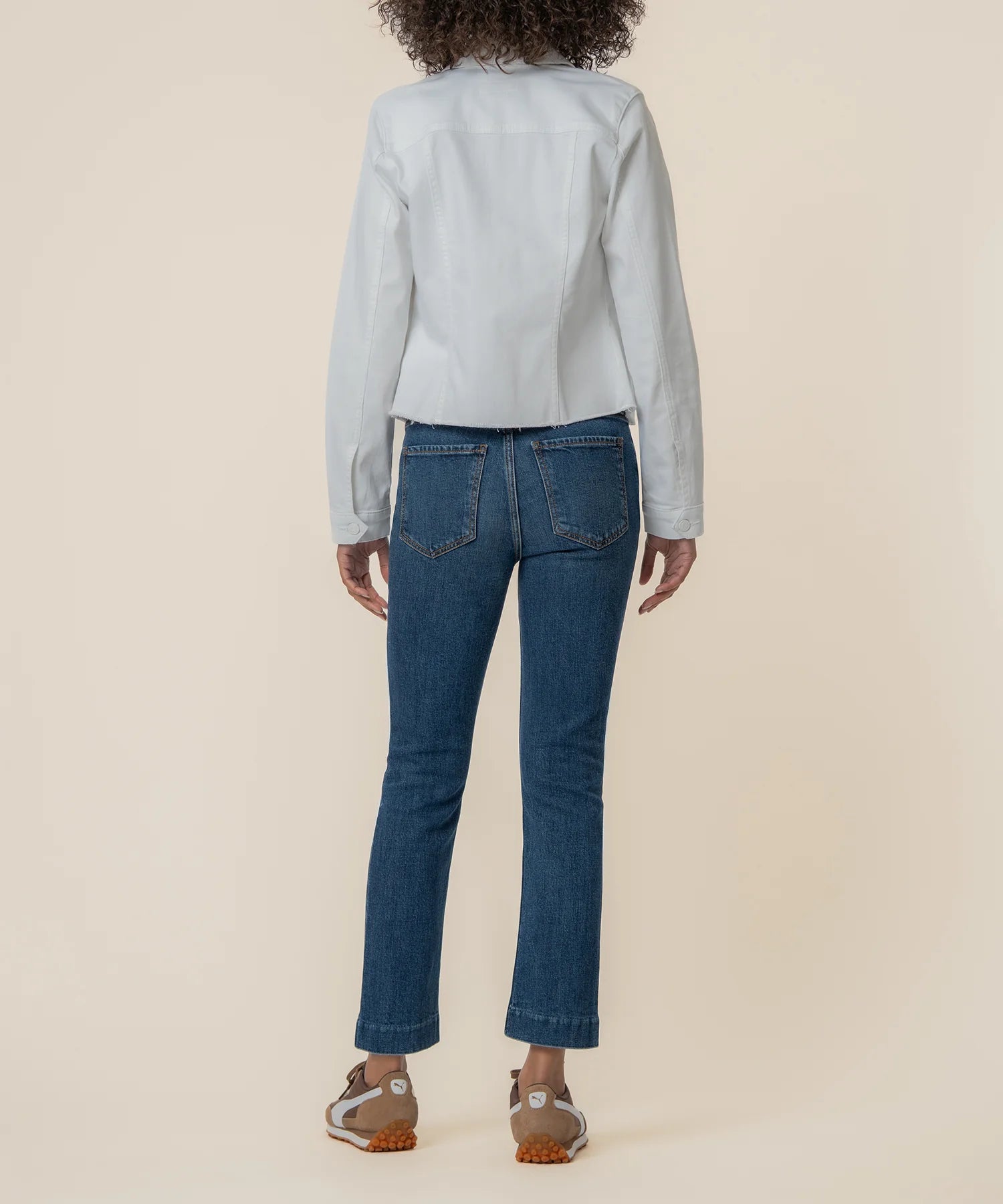 - This optic white denim jacket features a cropped silhouette with a frayed hem for a clean yet edgy finish. The subtle fray detail adds a modern touch that completes any look. Easy to layer, it’s the perfect jacket to elevate everyday outfits.